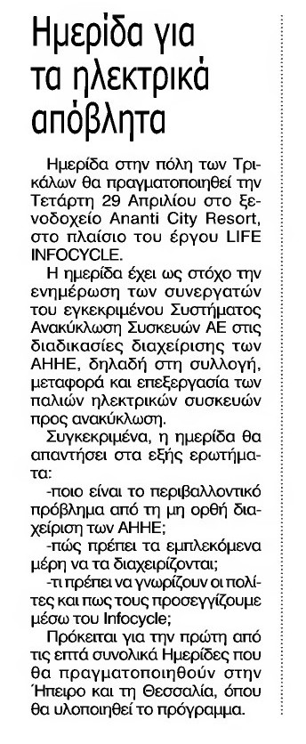 Ημερίδα στα Τρίκαλα 29.04.2015